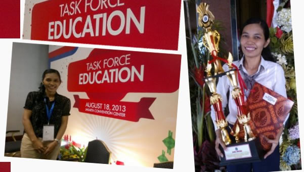 Ibu Evy memperoleh penghargaan sebagai Guru Berprestasi di Jakarta Barat 2013 yang berasal dari guru swasta.